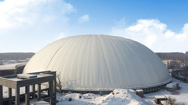 爲匹配球冠狀的膜體(tǐ)結構,我們将該項目鋼纜系統設計(jì)爲輻射狀鋼網,以滿足球冠狀膜體(tǐ)結構的最高強度标準。同樣可(kě)以抵抗250kg/㎡積雪。